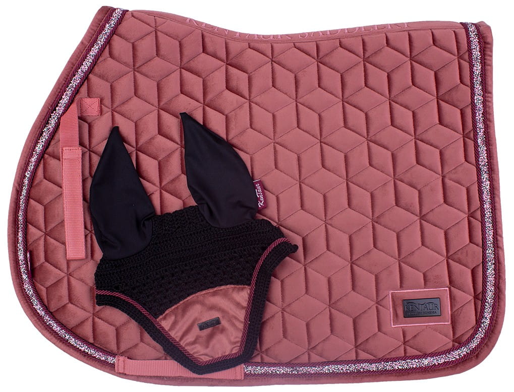Aksamitne wykończenie w połączeniu z nowoczesnym pikowaniem nadaje mu luksusowy charakter, który doskonale prezentuje się zarówno na treningach, jak i podczas zawodów. Subtelna lamówka zdobiona kamieniami oraz metalowa plakietka z logo Kentaur podkreślają prestiż produktu. Funkcjonalna, szybkoschnąca siateczka HI-TECH od spodu zapewnia doskonałą cyrkulację powietrza i komfort dla konia. W zestawie znajdują się dopasowane nauszniki, tworząc spójną i stylową całość.