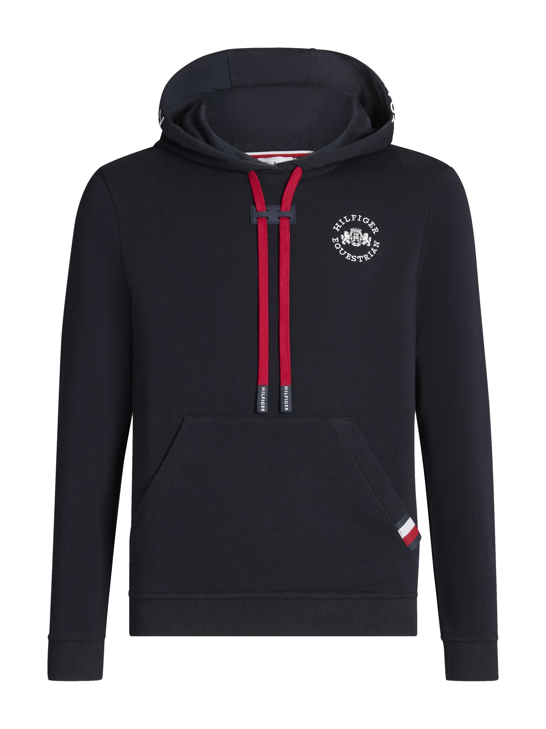 Regulowany kaptur ze sznurkiem pozwala dopasować okrycie do indywidualnych potrzeb, a praktyczna kieszeń z przodu dodaje funkcjonalności. Dodatkowe zapięcie przy kapturze zwiększa stabilność podczas ruchu i poprawia wygodę użytkowania. Całość uzupełniają charakterystyczne detale marki – naszywka z flagą, ozdobne pasy oraz nadruki z logo.